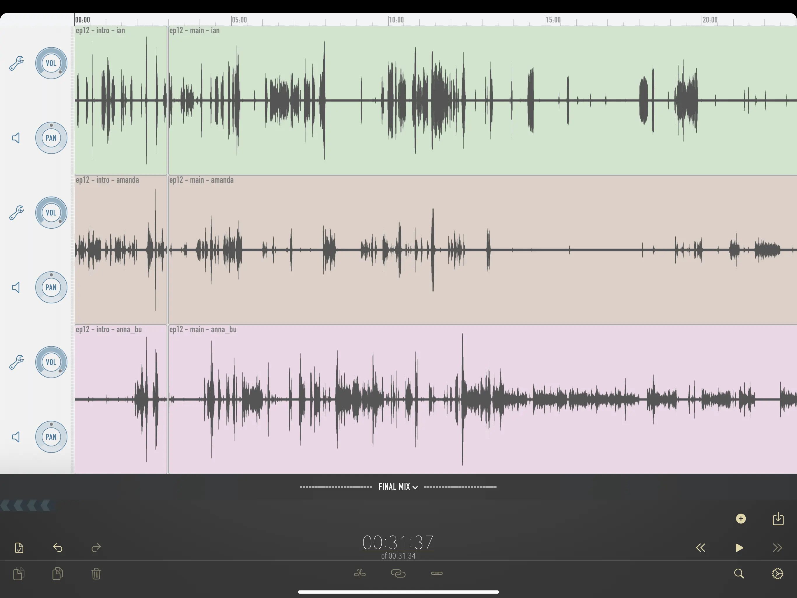 This edit brings the episode very close to its final releasable state. I make most of the big editing decisions about what to keep and what to cut during this stage. The review comments are an excellent starting point for this, but I have to make the final judgment as I am responsible for coherency and consistency. For example, if a participant references a previous part of the conversation, I need to make sure that I haven’t cut it so that listeners know what is being referred to.